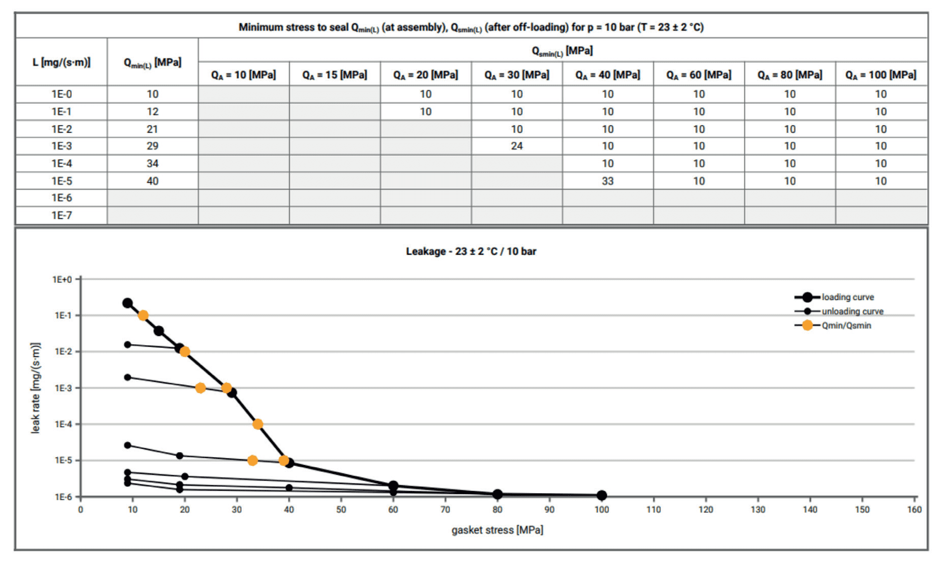 – QSmin: Minimum gasket surface pressure required under the service pressure conditions (i.e., after off-loading and at the service temperature) to maintain the required tightness class L for the internal test pressure.