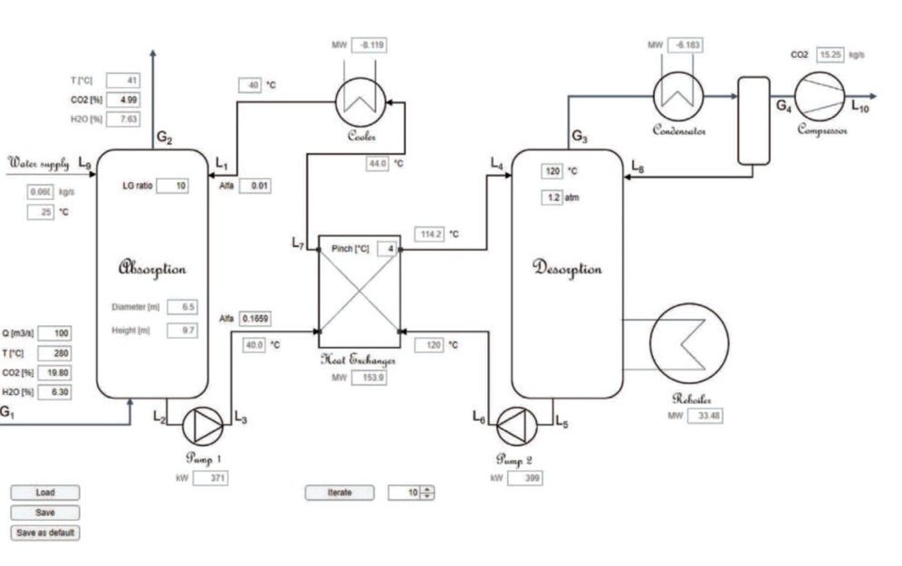 Carbon capture and storage (CCS) is expected to be an important tool to meet reduction targets on CO2 emissions. CCS by aid of scrubbers or the so-called Amine Process is the most mature end of pipe solution today but intensive research is going on to find cheaper and less energy-demanding processes. Process simulations are an important tool for researchers and process engineers as they can optimize and benchmark many different solutions against each other before the actual construction of the facilities.